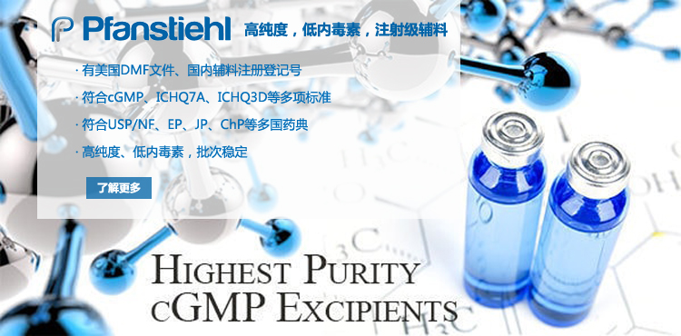 “熱烈祝賀Pfanstiehl的注射級甘氨酸Glycine(G-140)喜獲CDE登記號F20250000403, 這是Pfanstiehl產品獲得的第18個CDE登記號!”甘氨酸在醫藥輔料制劑中應用廣泛,, 可作為緩沖劑,增溶劑,穩定劑等,具有諸多優勢。Pfanstiehl秉承一貫高品質理念,為滿足全球生物制藥行業對于高品質甘氨酸的需求,隆重推出的注射級甘氨酸Glycine (G-140), 具有超高純度,超低內毒素,超低金屬殘留的特點,單獨檢測29種金屬離子,并且新增DNA,RNA,DNA酶,RNA酶和脂肪酶,亞硝酸鹽等多項質量指標的檢測,符合多國藥典規定(USP, EP, BP, JPE, ChP),可用于生物治療性藥物和疫苗的生產。產品信息:· 產品名稱:Glycine, High Purity, Low Endotoxin, Low Metals, USP, EP, BP, JPE, ChP (G-140)· 中文名稱:甘氨酸· 分子式:C2H5NO2· 分子量:75.07 g / mol· CAS號:56-40-6· 產品貨號:G-140產品特點: · 超高純度,超低內毒素,超低微生物含量,超低金屬雜質殘留· 質量指標新增DNA,RNA,DNA酶,RNA酶,脂肪酶和亞硝酸鹽檢測· 符合多國藥典:USP, EP, BP, JPE, ChP· 符合ICH Q3D標準· 符合GMP標準· 已獲DMF和CDE登記號 產品應用:· 緩沖劑· 穩定劑· 增溶劑如果您對Pfanstiehl注射級別Glycine G-140感興趣,歡迎聯系Pfanstiehl 中國區代理商北京西美杰科技有限公司獲得如下詳細的產品概況說明文件和測試樣品。Pfanstiehl Inc.最新產品系列如下,歡迎聯系北京西美杰科技有限公司獲取100g裝免費樣品。北京西美杰科技有限公司為Pfanstiehl中國代理,為客戶提供完善的技術支持與售后服務。歡迎撥打西美杰客服電話400-050-4006或者登陸網站www_xmjsci_com.leuyeo.cn了解更多信息。 更多>
